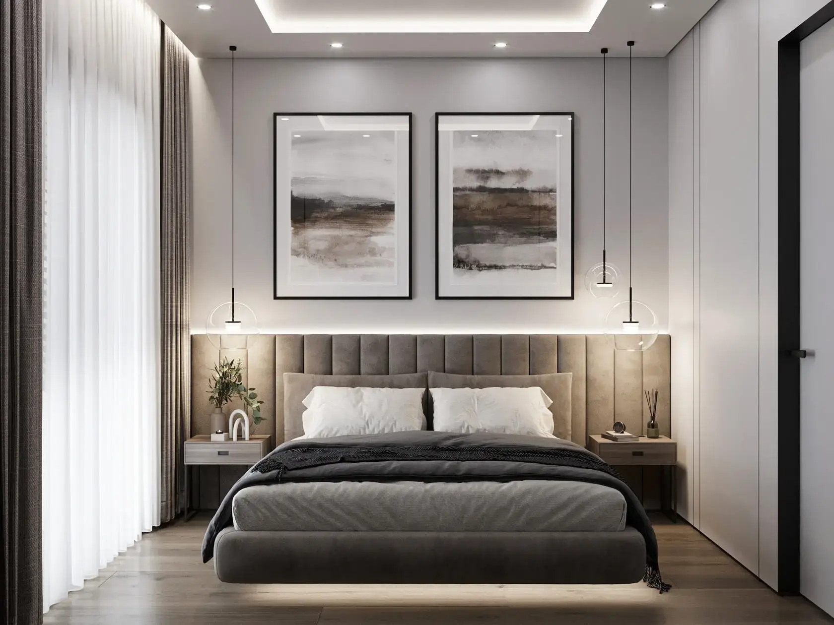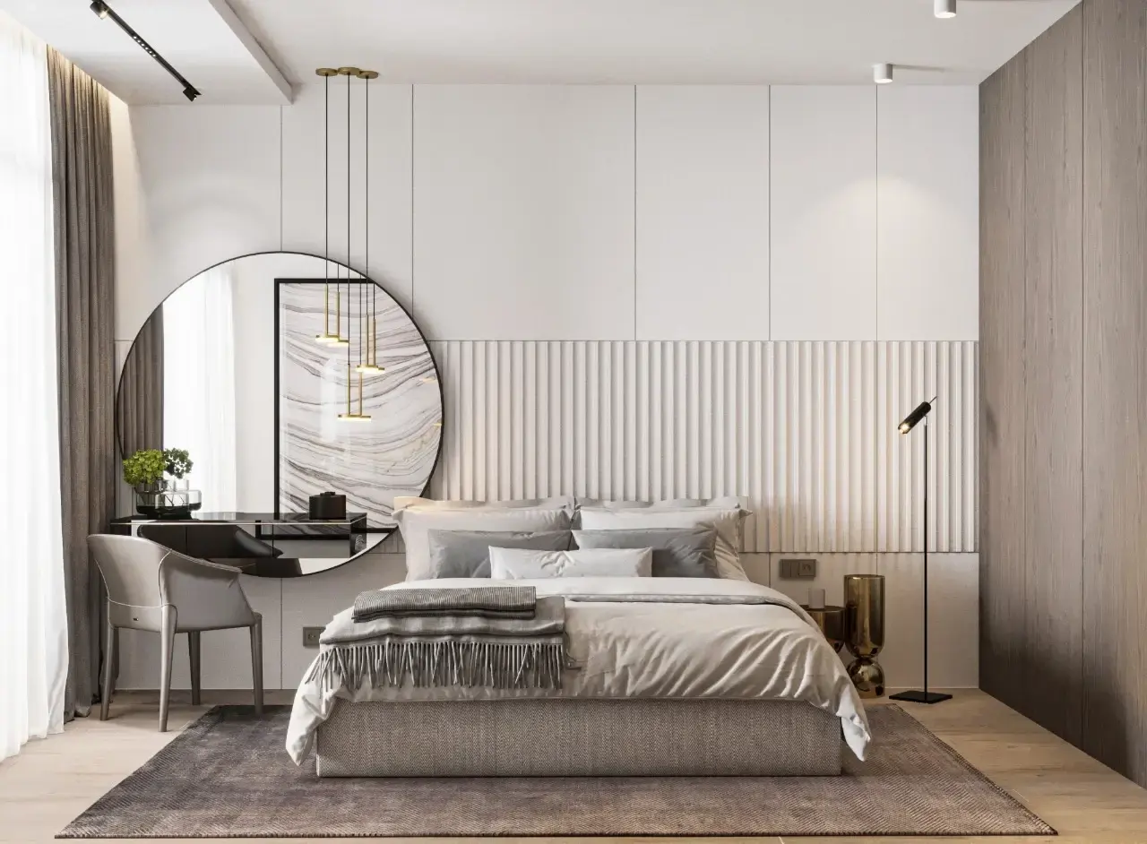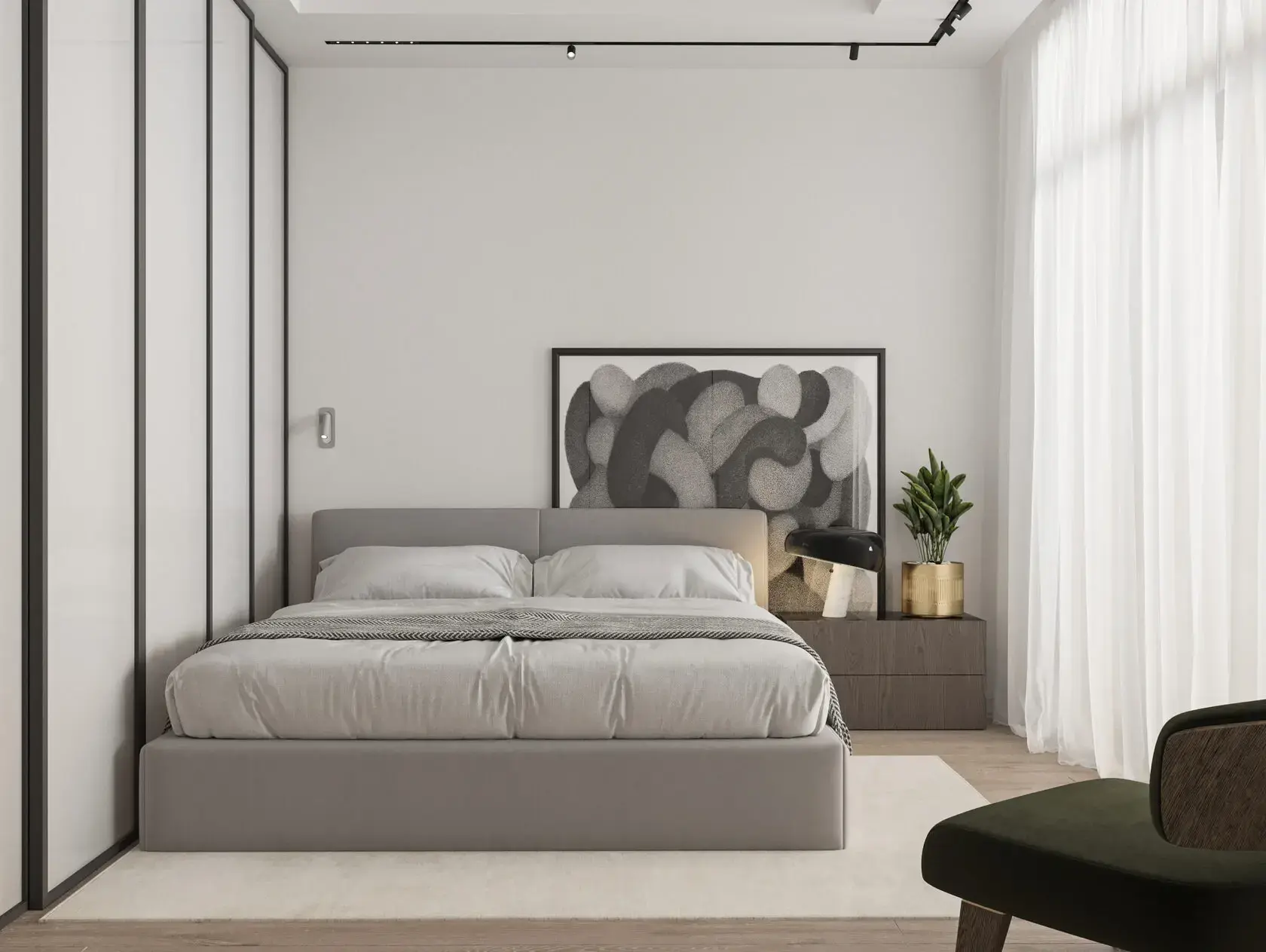 Современный спокойный интерьер помогает убрать лишнее и оставить только то, что работает на отдых. Простые линии, светлые тона, понятная мебель, минимум случайного декора создают ощущение порядка. Не нужно каждый раз «фильтровать» взглядом то, что происходит в комнате. Вы заходите в спальню и сразу понимаете, где кровать, где свет, где лежат нужные вещи, а где можно просто ничего не делать.