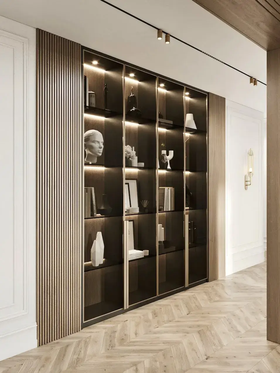 Лучше один продуманный шкаф, чем три разных корпуса по периметру. Встроенный шкаф до потолка вдоль одной стены с простыми фасадами в цвет стен выглядит, как спокойная плоскость, а не как громоздкий объект. Внутри уже можно разгуляться за счёт полок, ящиков и органайзеров. В узкой спальне удобно ставить такой шкаф вдоль длинной стены, в более широкой его можно увести в нишу или вокруг проёма.