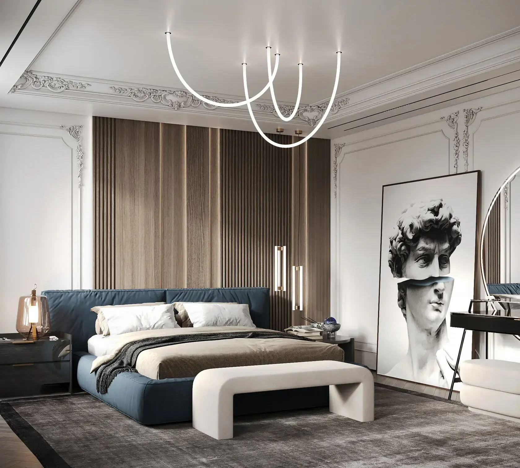 Удобно, когда общий свет мягкий и не бьёт прямо в глаза, а прикроватные источники дают локальное, более тёплое освещение. Это могут быть бра над тумбами, небольшие подвесы по бокам кровати или лампы на тумбах. Важно заранее продумать, откуда вы будете включать и выключать свет, чтобы не тянуться через всю комнату. Тёплая температура света в спальне обычно воспринимается приятнее, чем холодная, особенно вечером перед сном.